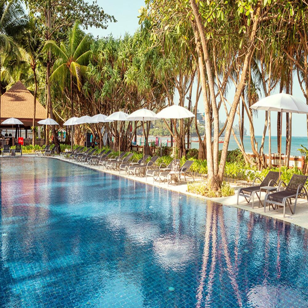 At Sunwing Kamala Beach, enjoy this world-class, fully contained family resort in a fantastic location and great value. Genuinely warm and intimately inviting, this laid-back hideaway will inspire you to do it all…or nothing at all. It is the perfect escape, yet not too far from the bustling nightlife of Patong. The resort is easily accessible from Phuket airport with only a 35-minute drive, and other tourist destinations are nearby. 15 minutes drive to Patong, 10 minutes walk to Kamala Village and Phuket Fantasea.